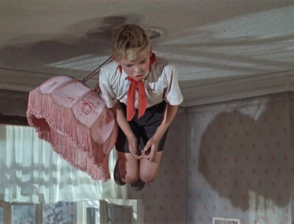 — Как же мне сложно было висеть под потолком! Снимали сцену в комнате, когда Волька увидел впервые джинна и взлетает вверх к люстре? Так вот, у меня под рубашкой был одет широкий пояс и сзади него — металлическое кольцо. Сверху «потолка» стоял человек с карабином, куда я и прикреплялся. Висел по сорок минут в ожидании команды «Мотор». Даже задыхался! В нужный момент карабин отцепляли, и я падал вниз – на мягкие подстилки. Потом на монтаже кадры прокручивали назад, и получалось, как будто взлетаю.